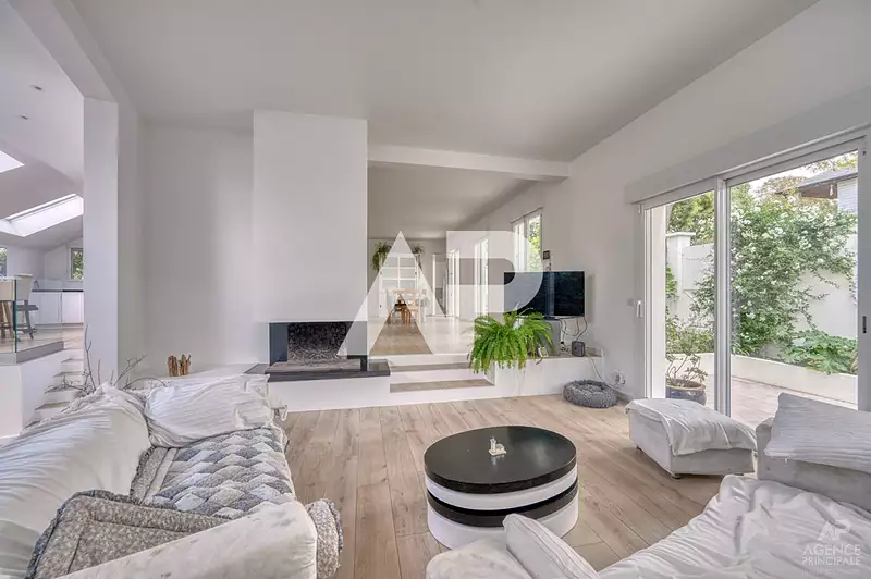 RUEIL-MALMAISON - PROCHE CENTRE. Dans l'un des secteurs les plus recherchés et les plus paisibles de Rueil-Malmaison, à seulement quelques minutes du coeur de ville, découvrez cette superbe maison familiale de 200m² habitables (337m2 au sol) pensée pour allier élégance, confort et modernité. Dès l'entrée, un vaste espace de vie (50m2) avec cheminée s'ouvre sur de magnifiques volumes baignés de lumière. Les larges ouvertures, la belle hauteur sous plafond et la harmonie parfaite entre les pièces créent une ambiance chaleureuse et accueillante. La cuisine, contemporaine et parfaitement équipée, communique harmonieusement avec l'espace de vie, offrant un cadre idéal pour partager des moments conviviaux autour d'un repas en famille ou entre amis. Au rez-de-jardin, deux chambres confortables (12 et 18m2) facilitent une vie de plain-pied, complétées par une salle de bains et des toilettes séparées pour un confort optimal. L'étage abrite quatre chambres supplémentaires (14, 15, 17 et 22m2) dont une véritable suite parentale avec sa salle de bains privative, son espace bureau et une terrasse intime pour profiter d'un moment de calme en extérieur. Un sous-sol total de 114 m2 offre un formidable potentiel d'aménagement, permettant de créer selon vos envies une salle de jeux, un home cinéma ou un espace bien-être de 44m2, une buanderie et 3 caves. A l'extérieur, le jardin clos et verdoyant, facile à entretenir, promet détente et moments de convivialité en toute intimité. Une place de stationnement vient parfaire cet ensemble unique, alliant adresse recherchée, généreux volumes et rénovation soignée. Rattachement scolaire : écoles mat primaires Jean de la Fontaine et collège Marcel Pagnol. AP/LG-APO
