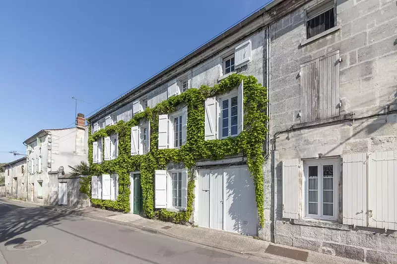A quelques pas du centre de la jolie ville de Jarnac, cette grande maison de ville offre un logement généreux sur trois étages et un charmant jardin clos avec dépendance.