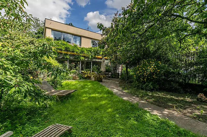 AUX PORTES DU PARC DES MONTALETS - Idéalement situé à 5 mn de la gare de Meudon, du T2 Meudon sur Seine et des écoles. Sur un terrain de 892m² cette maison d'environ 345m² construite dans les années 70 offre au rdc un très bel espace de vie traversant avec cheminée monumentale ouvrant sur terrasses et vaste jardin, une cuisine ouverte, un domaine parents avec salle de bains, dressing et wc séparé. A l'étage : 4 chambres avec chacune leur point d'eau, une salle de bains avec wc et un wc séparé. En rez-de-jardin se trouvent une immense salle de sport/jeux avec sauna, une chaufferie, une cave et un petit appartement indépendant offrant un salon avec cuisine US, une chambre, une salle de douche et un wc. Stationnement sur la parcelle. Travaux de rénovation à prévoir