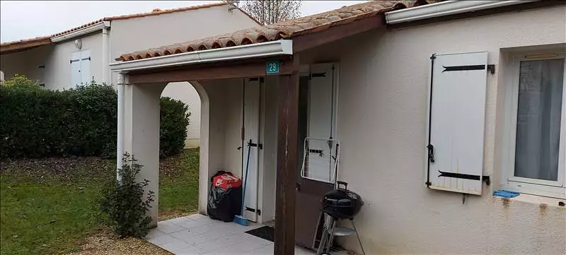 Aux portes de Jonzac, maison de plain pied composée d'un séjour et cuisine ouverte aménagée et équipée, chambre, salle d'eau, toilettes. Jardin et place de parking privatifs. Logement vendu meublé et entièrement équipé, prêt pour location saisonnière ou à l'année.