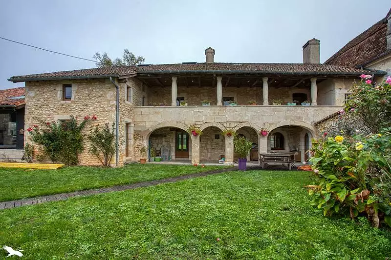 Superbe bâtisse chargée d histoire, dans un hameau au calme composée de 6 chambres, sejour 95 m², salle à manger 60 m², cuisine équipée, 6 chambres, salle de bains, salle d eau , 4 wc, grange indépendante de 300 m² au sol, atelier 200 m² avec petit logement indépendant, sur terrain de 13 hectares
