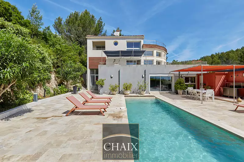 À Lascours, dans un écrin de verdure, villa d’exception de 350 m2 sur 5 000 m2 de terrain.
