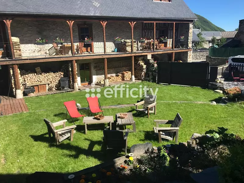 Au cœur des hautes Pyrénées à 5 min de Saint Lary, demeure en pierre sur 3 niveaux d'environ 350 m² dans le pure style Pyrénéens, poutres, cheminées, sol en pierre et bois entièrement refait à neuf, avec jardin arboré clos, et vue montagnes.