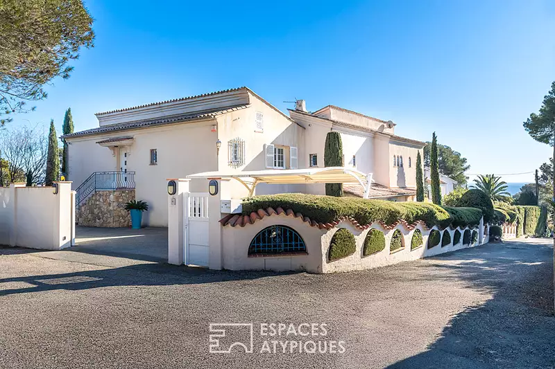 Située sur les hauteurs de Boulouris, à Saint-Raphaël, cette bastide d'exception profite d'un cadre résidentiel paisible et privilégié. Nichée en impasse, elle offre une tranquillité rare tout en restant proche des commodités essentielles. Avec une surface habitable de 350 m², cette bastide séduit par sa conception soignée et l'emploi de matériaux nobles, notamment ses élégants sols en marbre. Dès l'entrée, un vaste séjour d'environ 80 m² s'ouvre devant vous, inondé de lumière naturelle grâce à ses ouvertures face à la piscine et à un spectaculaire puits de lumière en forme de diamant. Cet espace s'harmonise parfaitement avec une cuisine dinatoire conviviale, idéale pour les repas en famille ou entre amis. Une chambre pouvant servir de bureau, ainsi qu'une salle de bain, complètent ce niveau. L'étage supérieur dessert trois grandes chambres lumineuses qui se partagent deux salles d'eau. A ce même niveau, un appartement communiquant et également accessible par une entrée indépendante, dispose d'un séjour avec terrasse et aperçu mer, une cuisine, deux chambres et deux salles d'eau, offrant une solution parfaite pour recevoir ou pour des projets multigénérationnels. Un très grand sous-sol, une buanderie et une cave à vin viennent enrichir les prestations, offrant des espaces de rangement et de personnalisation supplémentaires. Véritable havre de paix, un jardin paysagé de 1 300 m² offre un cadre idyllique et intimiste. Il abrite une somptueuse piscine chauffée en mosaïque, parfaite pour se détendre ou se rafraîchir durant les journées ensoleillées. Une élégante gloriette, équipée de fermetures à distance, sert de salon extérieur et s'intègre harmonieusement dans ce décor verdoyant, offrant un espace idéal pour prolonger les soirées estivales. Une cuisine de réception ouvrant sur une terrasse couverte, avec barbecue intégré, complète ce lieu de convivialité, pensé pour recevoir en toute sérénité et profiter pleinement de moments partagés. Dotée d'un système de chauffage thermodynamique moderne, cette bastide allie élégance, confort et performance énergétique. Rare par son emplacement en impasse, sa conception soignée et ses prestations haut de gamme, elle représente une opportunité unique pour un projet de vie exclusif à Saint-Raphaël. Commerces à 1km Ecole/Collège/Lycée à 5 minutes Plages à 15 minutes à pieds Gare TGV St Raphaël-Valescure à 2,5km Hôpital à 7 km CLASSE ÉNERGIE : C (140 kWh/m2/an) / CLASSE CLIMAT : A (4 kg CO2/m2/an). Montant moyen estimé des dépenses annuelles d'énergie pour un usage standard, établi à partir des prix de l'énergie de l'année 2021 : entre 2920 euros et 4020 euros. Vincent DURAND - Conseiller RSAC : 828 209 809 - Fréjus Vincent DURAND (EI) Agent Commercial - Numéro RSAC : 828 209 809 - Fréjus.