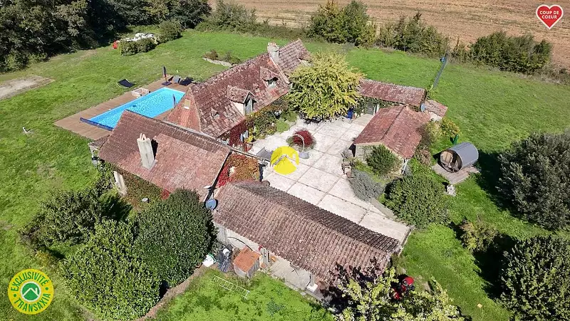À l'extérieur, la grande piscine avec liner et pompe neuf, entourée d'une plage en bois, invite à la détente dans un cadre paisible. Le terrain ceinture la maison, garantissant une totale intimité et un magnifique panorama sans vis-à-vis.
