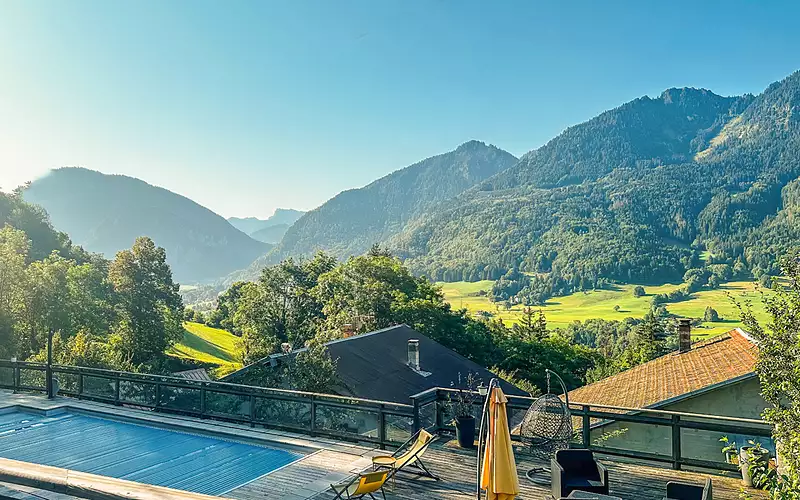 Charmant Chalet avec Piscine près de Châtel en Savoie Une Résidence de Prestige au Coeur de la Vallée d'Abondance à 900m d'altitude : En famille ou entre amis, ce repère hors du commun vous fera partager les moments les plus enviés, ceux qui ne se vivent pas qu'à moitié. Un décors de rêve : Ce chalet grandeur nature, située au fond d'une impasse, offre une vue panoramique sur la vallée d'Abondance, entre lacs et montagnes, dans la région de Savoie. La structure traditionnelle de cette ancienne ferme en pierres de taille, surmontée d'une toiture en lauze, confère à cette demeure de 7 chambres un charme authentique. Ici la matière est mère, tout en intégrant le confort moderne. Rénovée en 2010, elle propose deux espaces de vie d'une superficie totale de 355 m², orientés plein Sud pour un ensoleillement optimal toute l'année. Pour ceux qui aiment profiter du grand air, différentes terrasses, dont une couverte, offrent une vue panoramique sans aucun vis-à-vis, pour les plus authentiques des moments. Un aménagement spacieux et fonctionnel : A l'entrée généreuse du rez-de-chaussée, découvrez 5 chambres et plusieurs salles de bains. Le rez-de-jardin abrite une suite parentale avec sa salle de bains privative, un salon-séjour double avec cheminée et une cuisine équipée. Des pièces à vivre spacieuses, pour manger, papoter ou chiller, ici tout s'organise autour d'une valeur maîtresse : le bonheur. A l'étage, un appartement indépendant de trois pièces avec mezzanine complète l'ensemble. La propriété comprend également une cave, un garage et un carport. Piscine, jacuzzi et potentiel Gîte/Chambres d'hôtes : La présence d'une piscine extérieure chauffée et d'un jacuzzi confère une touche de luxe à cette propriété. Son potentiel touristique est indéniable, avec la possibilité de transformer les deux espaces de vie en un lot unique, offrant une opportunité idéale pour un gîte ou des chambres d'hôtes. Les espaces de vie exposés au sud créent une atmosphère chaleureuse et lumineuse. Un bien d'exception en Savoie : Avec 12 pièces sans vis-à-vis, une vue exceptionnelle dans un décors de rêve, cette propriété est idéalement située à seulement 10 min d'Abondance, 25 min de Châtel et des stations de ski des Portes du Soleil, 20 min d'Évian, et 25 min de Thonon-les-Bains, offrant un accès rapide à toutes les commodités. L'aéroport international de Genève est à 1h20, et la Suisse est accessible en 30 min. Un charme naturellement élégant : Cette demeure d'exception incarne un art de vivre où tradition et modernité se rencontrent, offrant un potentiel touristique attractif. Avec ses équipements de luxe et son emplacement stratégique, ce chalet enchanteur séduira les amoureux de la montagne et de la tranquillité, proposant une expérience unique en Savoie. A la fois accessible et secrètement positionné, cette propriété fait la part belle à une vie bercée de moments remplis de lumières entre bois, végétation et pierres. Nul doute, ce chalet à la douceur de vivre reflète la simplicité sophistiquée, hiver comme été. Ici, la nature vous invite à célébrer la vôtre. Dossier complet sur demande Johann BARDEY (EI) Agent Commercial - Numéro RSAC : - .