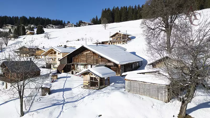 Proche pistes de ski de l'Espace Diamant, ancienne ferme savoyarde à rénover d'une surface totale de 355 m² sur deux niveaux, avec remise et dépendances.