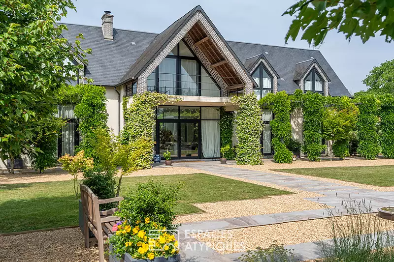 Au bout d'une allée discrète, abritée et enlacée par un jardin paysager de presque 3 000 m², cette impressionnante villa d'architecte récente joue la transparence et flirte avec les reflets de la végétation. Sur plus de 356 m² de design et de matériaux haut de gamme, le tout traversé de part en part grâce aux larges baies de plus de 6 mètres de hauteur, cette demeure familiale offre des volumes hors normes. Des parements de brique, de larges ouvertures à pans de bois, autant d'éléments typiques qui pourraient faire passer cette sublime réalisation architecturale pour une ancienne solognote revisitée en version contemporaine. Il n'en est rien. Dès l'entrée principale, un salon-séjour à l'atmosphère japonisante est réchauffé par une cheminée à foyer traversant et un escalier monumental entremêlé de bois et d'acier. Un coin repas harmonieux s'ouvre sur une cuisine contemporaine, idéalement conçue et pouvant être complètement ouverte sur les espaces de vie grâce à une cloison intégrée. Une arrière-cuisine généreuse et bien pensée trouve sa place dans la continuité de la maison. D'autre part, une extension contemporaine pensée comme un salon d'été vient parfaire le confort de la villa, dotée de larges ouvertures, laissant apprécier le cadre de verdure, été comme hiver. Un véritable salon de réception complémentaire, à la fois intimiste et douillet, permet de recevoir. Une large pièce à usage de bureau, aisément transformable en suite parentale de plain-pied, s'ouvre sur une salle de bain remarquable, dont la pièce maîtresse est une baignoire à l'esprit « onsen » japonais en bois lituanien, un sauna haut de gamme, et, pour prolonger l'expérience bien-être, un espace douche extérieur intimiste. Le premier niveau se compose de trois grandes suites, toutes dotées de leur propre salle d'eau ou salle de bain. L'une d'elles dispose d'un espace dressing sur mesure ainsi que d'un grand balcon orienté plein sud, tandis qu'une autre, comparable aux plus grands établissements hôteliers, s'ouvre sur un salon de détente privatif ainsi qu'une coursive extérieure, dans un esprit chalet du plus bel effet. Avec une vie dedans/dehors recherchée, la villa, en position centrale sur une parcelle savamment paysagée avec des essences délicates telles que des glycines grimpantes remarquables et diverses espèces d'érables du Japon, offre une atmosphère luxuriante et tranquille. Que ce soit depuis la terrasse principale, la pergola en bois végétalisée ou les balcons-terrasses, chaque espace offre une vue et une atmosphère particulière. Située dans un quartier recherché, cette propriété unique en son genre, discrète et familiale, offre un accès aisé aux commodités locales, y compris aux écoles, commerces et services, à seulement 15 minutes du centre-ville de Blois, au coeur de la vallée des Rois et à proximité des châteaux prestigieux de Chaumont-sur-Loire, Chambord ou encore Cheverny. Pompe à chaleur, panneaux photovoltaïques, isolation optimale, huisseries dernière génération, confort du chauffage au sol : la vie quotidienne y est écologique et économique grâce à un classement énergétique efficace. Cette sublime réalisation séduit dès le premier regard, entre modernité et beaux matériaux. CLASSE ÉNERGIE : B / CLASSE CLIMAT : A Estimation du cout annuel en énergie pour un usage standard entre 2000 euros et 2780 euros. Prix moyens des énergies indexés sur les années 2021, 2022, 2023 (abonnements compris) Contact (EI): Margaux Garanne: 07 70 18 84 04 Agent commercial RSAC 930189519 Les honoraires sont charge vendeur Les informations sur les risques auxquels ce bien est exposé sont disponibles sur le site Géorisques pour les zones concernées : www.georisques.gouv.fr