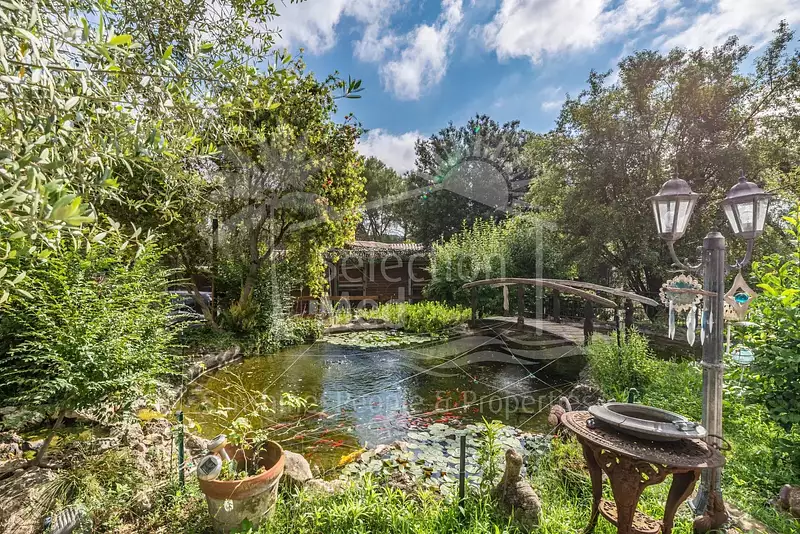 Le parc soigneusement aménagé se pare de multiples attraits naturels, dont une mare paisible entourée de nénuphars, apportant une note de poésie et de sérénité à l’ensemble.