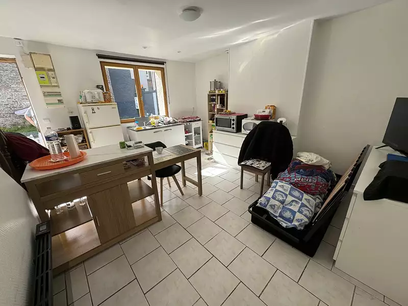 A vendre petite maison louée en impasse comprenant séjour/cuisine, une chambre, WC, salle de bains et cave.