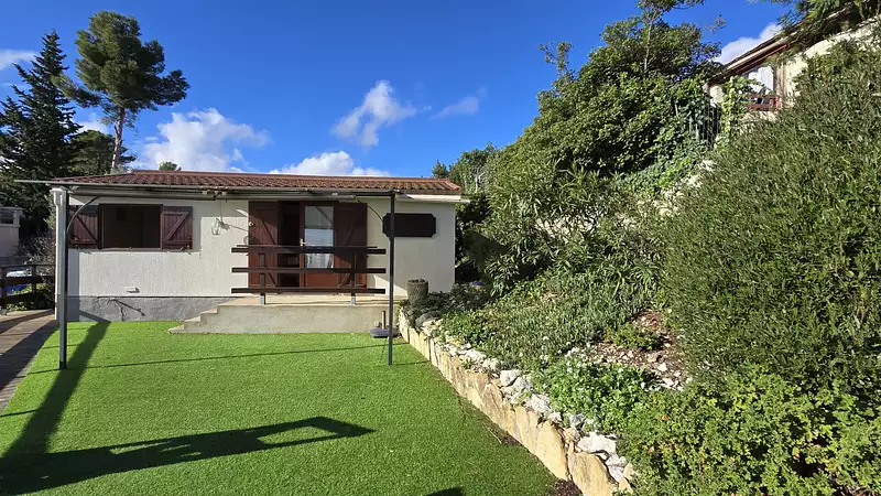 Maison avec vue mer Résidence calme au Castellet Prix : 196 000 euros ? Exclusivité Agence COUZINET En exclusivité, l'Agence COUZINET vous propose cette maison de 35 m², située dans une résidence calme et sécurisée au Castellet, avec piscine commune. La maison se compose d'un salon lumineux, de deux chambres, d'une salle de bain, d'un WC séparé et d'une cuisine ouverte. Elle est vendue meublée et dispose d'une place de parking privative. Le bien est implanté sur un terrain de 220 m², offrant un espace extérieur agréable avec une exposition plein sud et une vue mer dégagée. La résidence est bien entretenue et bénéficie d'un environnement calme, idéal pour une résidence principale ou secondaire. Prix : 196 000 euros Mandat exclusif Agence COUZINET