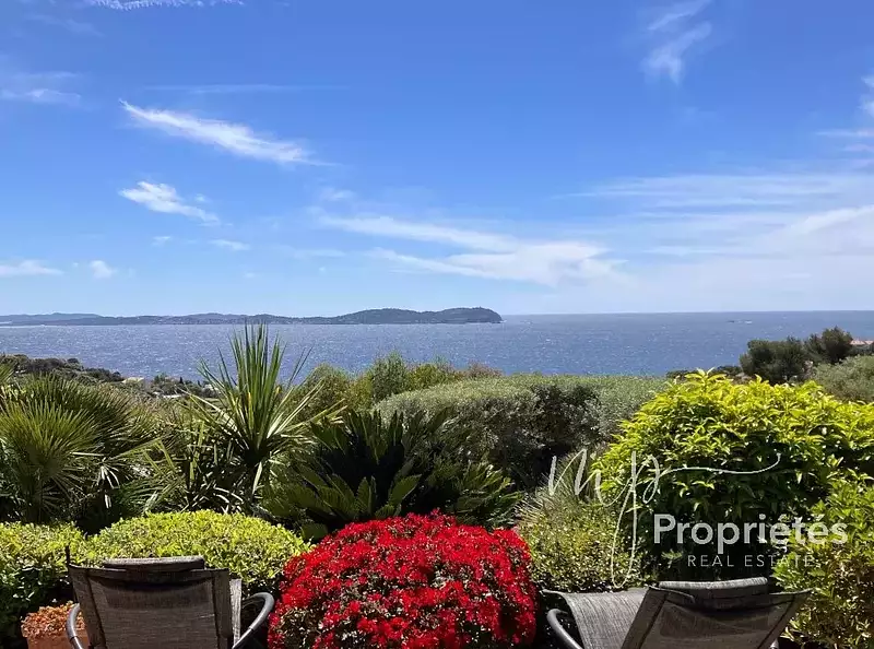 Avec une vue panoramique sur la presqu'île de Giens et Porquerolles, ce havre de paix se compose d'une villa principale sur deux niveaux d'une surface de 215m² avec studio indépendant, d'une maison de plein pieds, une piscine à débordement chauffée, un pool house, jacuzzi (intérieur et extérieur), et d'un garage spacieux.