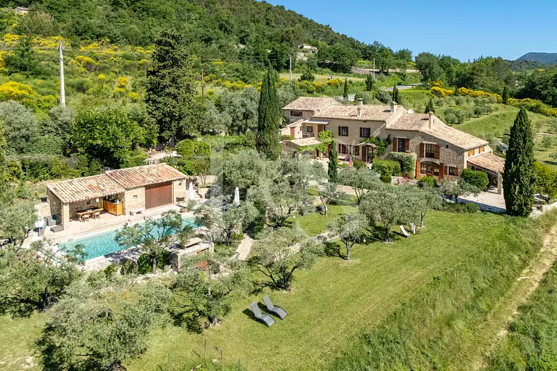 Sur près de 7 700 m2, le terrain paysager propose de multiples espaces de détente, une superbe piscine avec vue imprenable sur le mont Ventoux, le tout dans un cadre préservé et sans vis-à-vis.