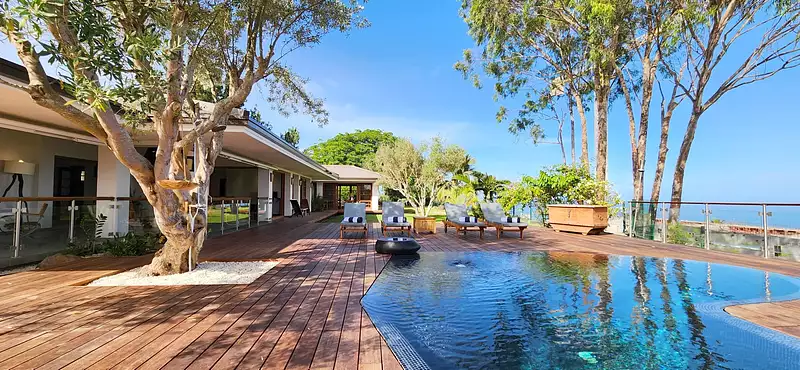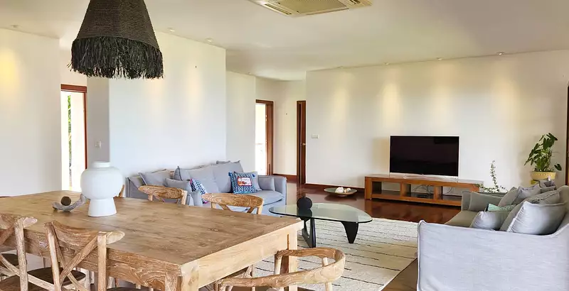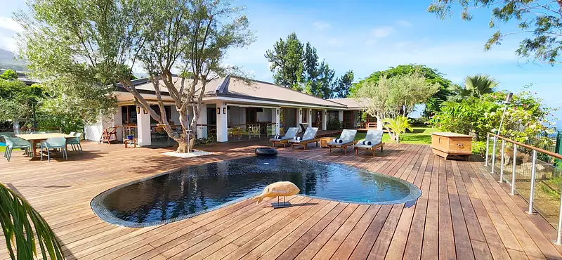 S'étendant sur un terrain généreux de plus de 2800 m², cette villa de plain-pied déploie 360 m² d'espaces de vie spacieux et élégamment aménagés. Le raffinement domine l'intérieur, avec un savant mélange de murs lumineux et de boiseries tropicales qui habillent les sols et les ouvertures. Le bois, élément central et chaleureux, infuse chaque pièce d'une atmosphère accueillante et cosy rappelant le “comme à la maison”.