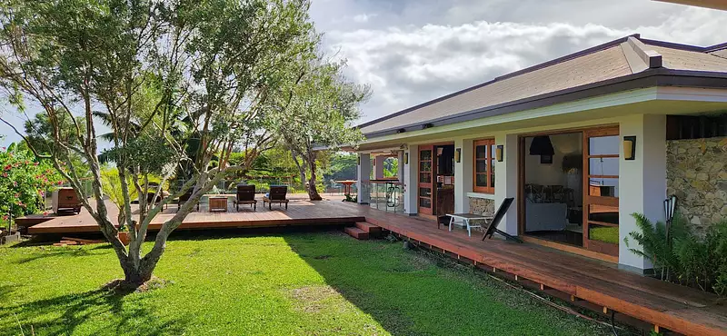 Nichée dans les hauteurs prestigieuses de Punaauia sur la côte ouest de Tahiti, cette villa se dresse majestueusement au coeur d'une résidence de standing.