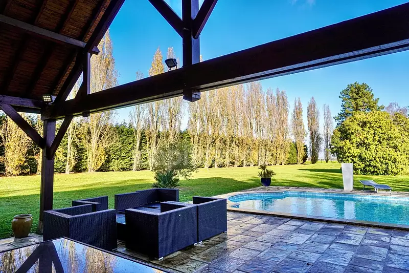 A l'extérieur, une magnifique terrasse et sa piscine chauffée par pompe à chaleur et équipée d'un volet roulant de fermeture vous permettra de profiter d'un cadre idyllique et d'une tranquillité relaxante au sein d'un parc joliment arboré et clôturé.