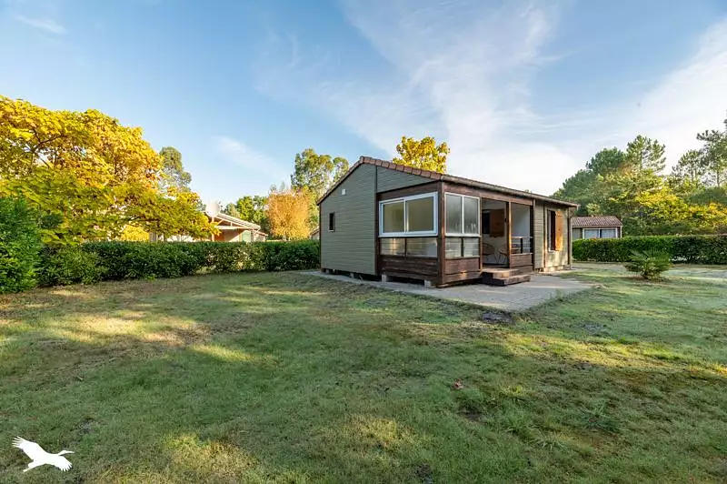 En pleine nature tout en restant proche du lac et du bourg, venez visiter ce chalet tout équipé situé dans une résidence sécurisée loin de toutes nuisances avec séjour/cuisine, deux chambres, un wc, une salle d'eau et un cellier. A l'extérieur terrasse couverte vue forêt et dépendance attenante sur une parcelle d'environ 370 m².