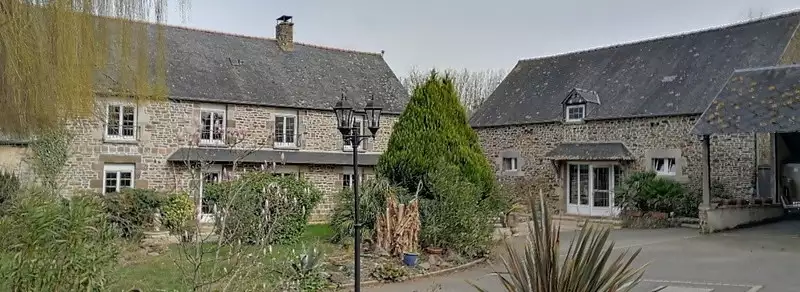 Le bâtiment principal est constitué d'une longère entièrement rénovée en pierres sous ardoises datant des années 1900.