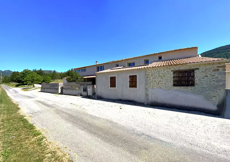 A seulement 30 minutes de Buis-les-Baronnies, au coeur des Baronnies, venez découvrir cet ensemble immobilier rare, offrant de belles possibilités. Ce bien se compse d'une habitation principale d'environ 220m2 habitable, de plain-pied côté jardin, un appartement indépendant d'environ 65m2, actuellement loué 565€/mois charges comprises et d'un local commercial de 94m2, destiné à la restauration ou amménageable en atelier, bénéficiant d'une belle terrasse avec une vue imprenable. Un bien pour un projet de vie avec activité commerciale. Habitation principale : - Entrée, - Cuisine/Salle à manger, - Séjour, - Loggia, - 2 chambres, Wc indépendant, - Salle d'eau, - Suite parentale, - Buanderie, - 2 terrasses. Appartement : - Séjour, - Cuisine ouverte, - Chambre, - Salle d'eau, - Buanderie, - Mezzanine, - Wc indépendant, - Terrasse, - jardinet. Local commercial : - Comptoir, - Salle de réception, - Wc indépendant, - Cuisine, - Cellier, - Terrasse. Annexes : - Cave.
