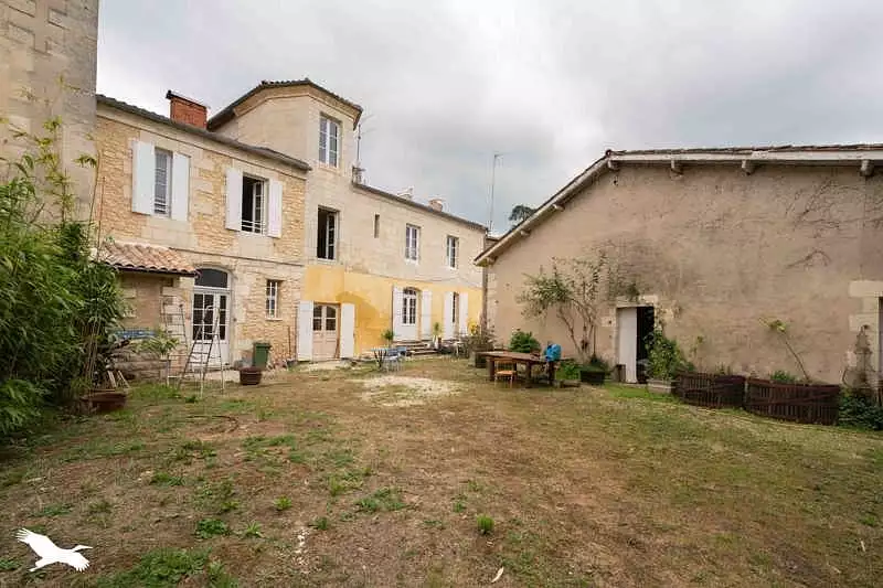 En plein coeur du bourg de Montguyon cette magnifique maison de Bourg de plus de 370 m² pleine de charme avec ces beaux volumes , 5 chambres, un local commercial avec sa réserve, de nombreuses dépendances et terrain clos arboré de 2400 m² bordé par un petit ruisseau.