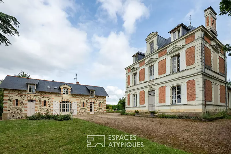 Cette belle propriété, située dans un environnement verdoyant, révèle un majestueux hôtel particulier du XIXe siècle d'environ 200 m2 habitables et un pavillon d'environ 175 m2 habitables. L'ensemble est édifié au coeur d'un beau parc paysagé de plus d'1 hectare à quelques encablures de la rivière. L'ensemble a été entièrement rénové dans les règles de l'art, avec des matériaux authentiques et intemporels, alliant ainsi modernité et authenticité. Entouré de magnifiques arbres centenaires, ce lieu est entièrement clos de murs, assurant calme et sérénité. L'hôtel particulier aux façades en pierres de tuffeau et briques dévoile une décoration intérieure revisitée avec une touche design très raffinée. Le hall d'entrée à l'ambiance intimiste et feutrée dévoile un rez-de-chaussée sur sol en terres cuites, doté d'une très belle hauteur sous plafond. Il distribue d'une part un salon avec une belle cheminée en tuffeau, une grande cuisine familiale et une cave en sous-sol. D'autre part, un second salon avec cheminée, suivi d'une large salle à manger qui communique avec la cuisine. Le bel escalier en bois mène aux deux étages supérieurs qui offrent une suite parentale avec dressing et salle de bains, ainsi que trois autres chambres et une salle de bains. Une seconde habitation dans l'ancien pavillon offre une surface d'environ 175 m2 habitables, composée d'une cuisine ouverte sur la salle à manger et d'une grande pièce de vie d'environ 60 m2 agrémentée d'une cheminée. A l'étage, un couloir dessert une salle de bains indépendante et trois chambres, dont une avec dressing et salle de douche. Cette belle propriété est enrichie d'une piscine couverte et chauffée avec son pool-house et ses sanitaires, d'un pigeonnier, de deux puits et d'une cave extérieure. Les commerces et services sont à quelques mètres de la propriété, et le centre d'Angers est seulement à 20 minutes. Ce lieu unique offre un cadre de vie idéal pour une famille, avec un possible projet de gîte et de chambres d'hôtes, ou un rendement locatif. Classe Energie: D / Classe Climat: C Montant moyen estimé des dépenses annuelles d'énergie pour un usage standard, établi à partir des prix de l'énergie de l'année 2021: entre 4 440 euros et 6 050 euros. Contact : Emmanuelle Lego +33 (0)6 49 71 60 72 Agent commercial immatriculé au RSAC Angers N°485 286 868 Les honoraires sont à la charge du vendeur. Les informations sur les risques auxquels ce bien est exposé sont disponibles sur le site Géorisques pour les zones concernées.