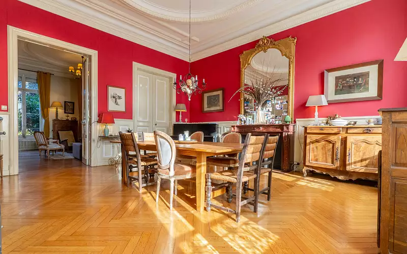 Ce bien rare développe de généreux volumes et se compose de 10 chambres aux proportions élégantes qui peuvent être repensés (réunir des pièces pour en faire de plus grandes), sublimées par de superbes parquets massifs et une hauteur sous plafond remarquable, conférant un charme intemporel à chaque espace.