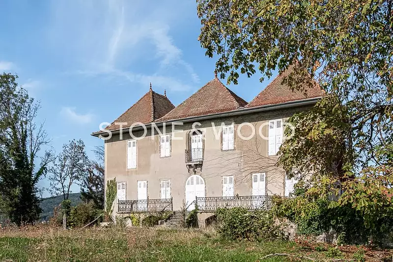 Aux portes d'Annecy avec vue imprenable sur les montagnes, demeure d'exception du XVe siècle située dans un cadre champêtre, au calme absolu, à seulement 5 minutes du centre d'Annecy et 20 minutes de Genève.
