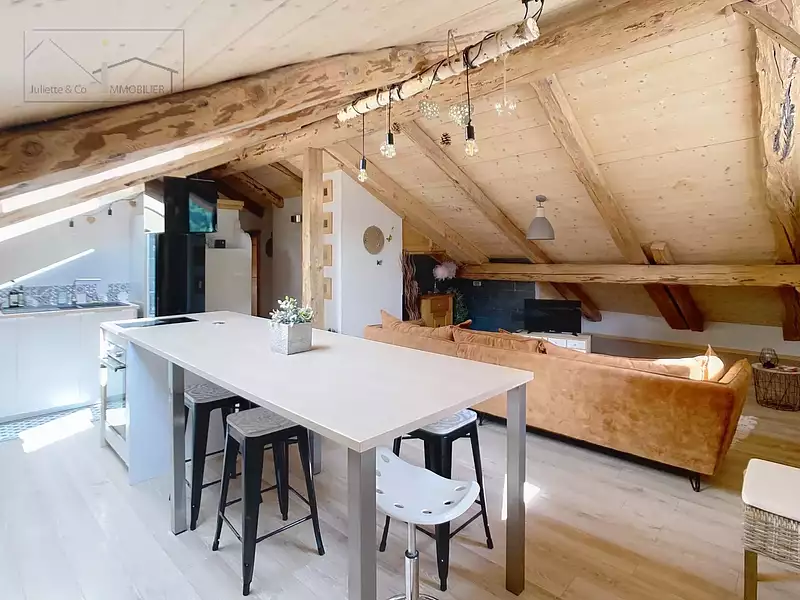 Entièrement meublée, cette propriété est prête à vous recevoir. La cheminée ajoute une touche cosy, idéale pour les soirées d'hiver. De plus, la triple vitrage garantit efficacité énergétique et tranquillité, tout en offrant une vue imprenable sur le paysage montagnard environnant.
