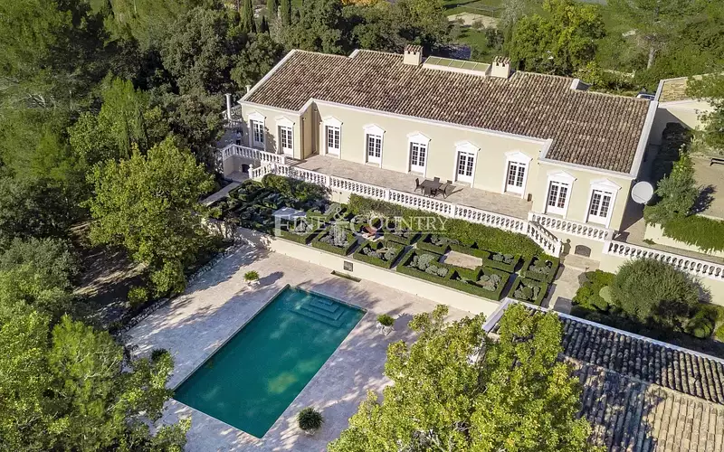 Bénéficiant de vues pittoresques sur le village historique de Callas, dans la région du Var, cette magnifique villa de 4 chambres allie élégance intemporelle et luxe moderne. Implantée sur un terrain de 6 605 m², la maison principale de 380 m², de plain-pied, comprend :