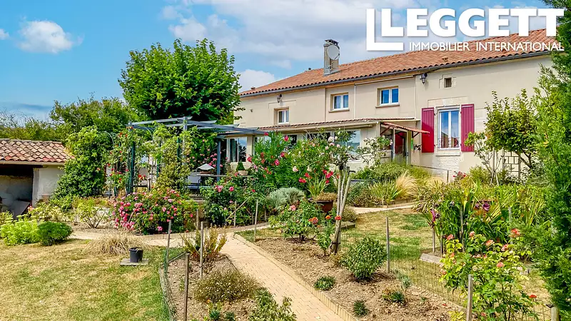 A15408 - Située dans le département du sud de la Charente, cette propriété est dans un hameau calme avec de très belles vues sur la campagne environnante.
