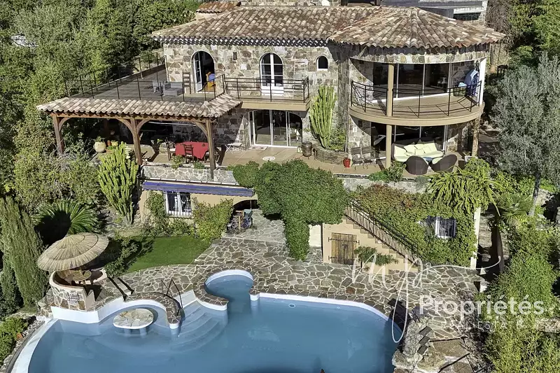 Nichée sur les hauteurs du Rayol-Canadel, cette propriété rare et raffinée offre une vue panoramique unique sur la mer et les Îles d’Or. Édifiée sur quatre niveaux desservis par ascenseur, elle déploie 386,30 m² habitables au cœur d’un terrain arboré de 1 600 m², avec grand garage et sept places de stationnement.