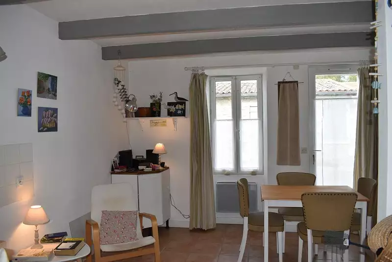 Proche plage et centre village, maison d'habitation comprenant une pièce de vie avec coin cuisine équipée, à l'étage une chambre, salle d'eau avec wc. Local à vélo non attenant. Sans extérieur privatif.