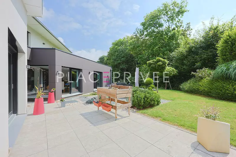 Épinal, secteur Laufremont : Vend maison contemporaine de 2014, 390 m² au sol dont 271 m² habitables, terrain de 2 000 m², garage 120 m² Dans le secteur prisé et résidentiel de Laufremont, cette maison contemporaine construite en 2014 déploie 390 m² au sol, dont 271 m² habitables, sur un terrain arboré d'environ 2 000 m². L'emplacement, en hauteur, offre un cadre de vie sécurisé, préservé et particulièrement calme, à quelques minutes du centre d'Épinal. L'architecture sobre et élégante s'appuie sur des matériaux de qualité : toiture en zinc, menuiseries en eucalyptus noir, larges baies vitrées, terrasses ouvertes sur la verdure. L'ensemble se distingue par une conception fluide et lumineuse, parfaitement intégrée à la topographie du terrain. Le rez-de-chaussée propose une vraie vie de plain-pied : vaste entrée, bureau indépendant (accessible également de l'extérieur), pièce de vie traversante composée d'un salon, d'une salle à manger et d'une cuisine équipée avec cellier. La suite parentale, spacieuse et parfaitement agencée, comprend un dressing, une salle de bain et des toilettes séparées. Elle s'ouvre directement sur le jardin, dans une ambiance feutrée et contemporaine, très recherchée aujourd'hui. A l'étage, deux chambres, une salle de bain avec WC et un salon en mezzanine donnant sur une terrasse suspendue viennent compléter l'ensemble, avec une belle sensation d'espace et de clarté. En rez-de-jardin, un volume de 120 m² regroupe un immense garage avec porte motorisée, une buanderie fonctionnelle et une cave saine, idéale pour stockage ou aménagement complémentaire. La maison affiche une performance énergétique rare (DPE A), reflet d'une conception maîtrisée et de prestations durables. A 25 minutes de Gérardmer, 40 minutes de Nancy, 2h25 de Paris en TGV, ce bien s'adresse aussi bien à une clientèle locale exigeante qu'à des acquéreurs recherchant une résidence principale ou secondaire dans les Vosges, au sein d'un cadre naturel protégé, mais proche de toutes les commodités. Une maison lumineuse, élégante, sécurisée, pensée pour accueillir durablement et avec style. Une exclusivité Place Privée. Les informations sur les risques auxquels ce bien est exposé sont disponibles sur le site Géorisques : www.georisques.gouv.fr Anthony MAURICE (EI) Agent Commercial - Numéro RSAC : - .