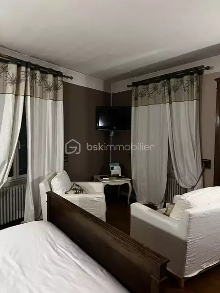 Actuellement chambres d'hôtes restaurant de 7 chambres avec salle de restauration, terrasse, cuisine, deux stationnements intérieurs. Cadre charmant  très romantique. Excellent état. Surface utilisée 394 m2, 186 m2 aménageables.