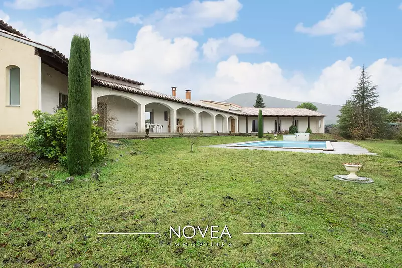 Novea Immobilier a le plaisir de vous présenter à la vente, dans un environnement privilégié, au coeur d'un paysage naturel exceptionnel, cette vaste maison familiale de 396 m², construite en béton cellulaire (construite dans le respect des normes anti-sismiques en vigueur) et parfaitement entretenue, elle se distingue par ses volumes rares, sa luminosité, sa qualité de construction et son calme absolu. Implantée sur un terrain de 6 700 m², elle offre un confort de vie remarquable, sans aucun travaux à prévoir.