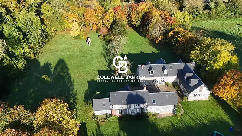 Nichée au cœur de la nature, sur les hauteurs verdoyantes d’Honfleur, cette propriété d’exception se révèle en toute discrétion, enveloppée dans un écrin de verdure de plus de 7 000 m², à l’abri des regards. Dès l’entrée, en remontant l’allée bordée d’arbres, le charme opère : les bâtisses apparaissent peu à peu, dans un jeu de dévoilement élégant, affirmant leur caractère.