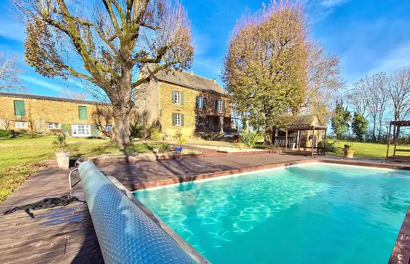 Dans la campagne Aveyronnaise à 5mn de Naucelle, Demeure de Caractère en pierres avec toiture en lauzes comprenant 12 pièces (env 400 m²) fin XIX début du XXe siècle, PISCINE, JACUZZI