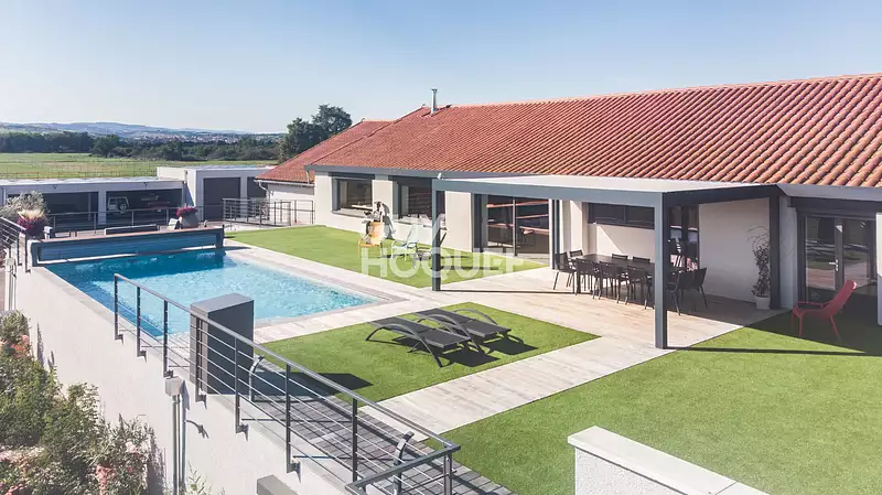 VOTRE AGENCE GUY HOQUET BOEN SUR LIGNON VOUS PROPOSE EN EXCLUSIVITE : Située dans la plaine du Forez , à 1 heure de Lyon et 50 minutes de Saint-Etienne (accès autoroute A89 à 10 minutes), cette maison récente offre une surface habitable de 405 m² aux espaces lumineux et généreux. La pièce de vie principale de 174 m² avec cuisine ouverte, s'ouvre sur une immense terrasse équipée d'une pergola bioclimatique et bénéficie d'une vue panoramique dégagée. Dans son prolongement, une piscine chauffée de 6 x 12 m avec nage à contre-courant et son poolhouse invite à la détente et aux moments conviviaux. La partie nuit comprend quatre suites, dont une suite parentale de 48 m² dotée d'un très grand dressing, offrant confort et intimité. Au même niveau, se trouvent également une salle de sport et une grande buanderie complétant parfaitement les équipements de la maison. Le sous-sol complet d'environ 600 m² dispose d'un atelier, d'un garage intérieur pouvant accueillir au moins quinze véhicules, d'un grand espace de détente et d'une cave à vins climatisée. Avec ces installations exceptionnelles, cette demeure est idéale pour un collectionneur de voitures souhaitant allier confort et passion. Le terrain est entièrement clos avec un puits et arrosage automatique (raccordé à deux cuves de 20 000 litres de récupération des eaux de pluie), il s'étend sur 6 734 m² et comprend une allée goudronnée, un portail électrique, ainsi qu'un interphone, visiophone et système d'alarme, assurant sécurité et confort. A l'extérieur, l'espace a été pensé pour le bien-être et la convivialité avec un terrain de pétanque, un chenil et un garage complémentaire pouvant accueillir six véhicules, dont un camping-car. Cette magnifique maison allie confort moderne et performance énergétique exceptionnelle. Classée A au diagnostic de performance énergétique, elle garantit des économies notables sur les factures et un confort optimal en toutes saisons. Équipée de 39 panneaux solaires, elle produit une grande partie de sa propre électricité, réduisant considérablement les coûts énergétiques et l'empreinte carbone. Venez découvrir cette maison rare et récente conjuguant grands volumes, confort moderne et prestations haut de gamme et offrant une expérience de vie unique à ses futurs propriétaires. Un bien rare à visiter sans tarder ! Contactez votre agence Guy Hoquet pour plus d'informations. Catherine DAMAS (EI) Agent Commercial - Numéro RSAC : EI-895022325 - Saint-Etienne.
