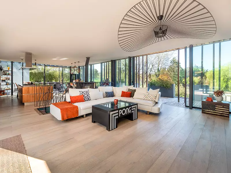 Maison d'exception dans un environnement calme et verdoyant , elle dispose d'une pièce de vie ouverte avec cuisine équipée, bureau, 3 suites avec dressing, salle de douche et mezzanine. A l'étage suite parentale avec dressing, salle de bains donnant sur toit terrasse végétalisé, en sous sol garage de 80m² salle de jeux , salle de cinéma, espace bien être avec sauna, jacuzzi et salle de sport. terrasses autour de la maison, extrêmement lumineuse, prestations haut de gamme, maison écologique et économique terrain de 1600m² avec piscine. 20 min de CDG, accès rapide à l'A1 et à la gare.