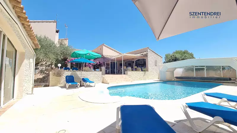 SZENTENDREI immobilier a le plaisir de vous présenter à la vente cet ensemble immobilier de 410m² avec piscine sur un terrain de 5000m² situé dans un quartier résidentiel de Villetelle (34400).