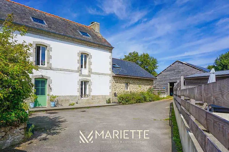 "LES GITES DES ETANGS" Est ce corps de ferme, installé sur plus de 4 hectares à Trégunc/Trévignon, dans un environnement préservé à quelques pas du littoral. La propriété conjugue le charme de la pierre et du bois au confort moderne, et réunit une maison principale d'environ 240m², trois gîtes indépendants (82, 40 et 53 m²) loués toute l'année, et un vaste hangar de 300 m². Rentabilité locative et photos supplémentaires disponibles sur demande. La distribution : La maison principale d'environ 240m² sur trois niveaux comprenant : Au RDC : Vaste salon-séjour de 70 m² avec cuisine ouverte et accès terrasse, chambre et salle d'eau, WC et local. Au 1er étage : Mezzanine, deux chambres, pièce prévu pour chambre avec salle d'eau. Au 2ème étage : Trois chambres à finir d'aménager. Trois gîtes indépendants (surfaces : 82, 40 et 53 m²), comprenant chacun 2 ou 3 chambres, une pièce de vie conviviale, une terrasse privative/ou jardin et un stationnement. Annexes : Hangar d'environ 300 m². Ce que l'on aime : L'alliance pierre et bois, le calme absolu proche du littoral, les gîtes prêts à l'accueil, les multiples possibilités offertes par les hectares. Points d'intérêt : Plage de la baleine à 800 m Port et étangs accessibles à pied Commerces et marché de Trégunc à 5 km Concarneau et sa Ville Close à env. 15 min Pont-Aven à env. 20 min Gare de Quimperlé à env. 30 min ? Quimper à env. 40 min Plus d'informations sur notre site et sur nos réseaux sociaux. Depuis plus de 3 ans, Mariette Immobilier Conciergerie soutient la SNSM de Trévignon ? Concarneau en reversant 1 % de chaque commission d'agence, afin de contribuer à leurs actions de prévention et de sauvetage en mer. (3.81 % honoraires TTC à la charge de l'acquéreur.)