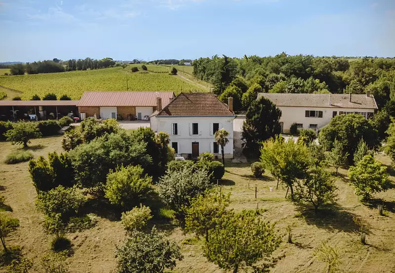 La maison principale propose des espaces de vie généreux avec de hauts plafonds, des détails architecturaux originaux et une atmosphère chaleureuse et accueillante. À l'étage, cinq chambres spacieuses et des pièces supplémentaires offrent de nombreuses possibilités d'hébergement, tandis qu'une grange attenante, ancien chai à vin, ajoute au caractère historique de la propriété.