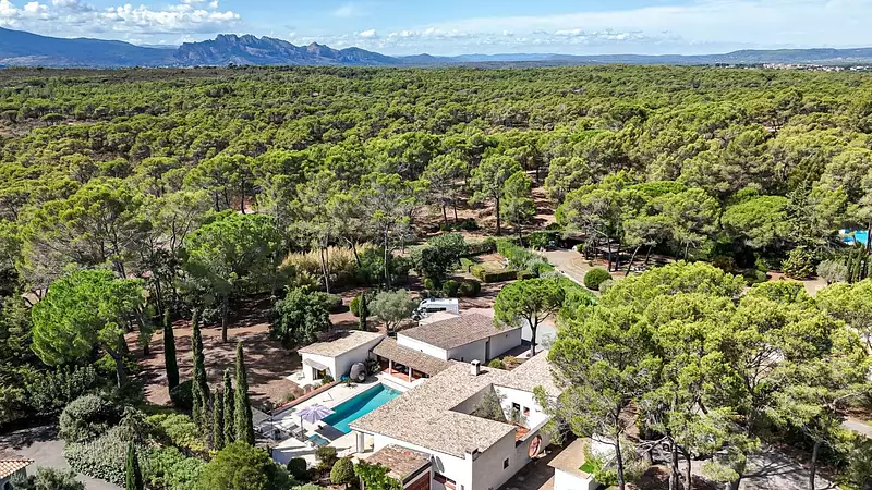 À l'extérieur, la piscine invite à la détente et aux moments de convivialité et s'ouvre sur un vaste parc arboré offrant intimité et sérénité.