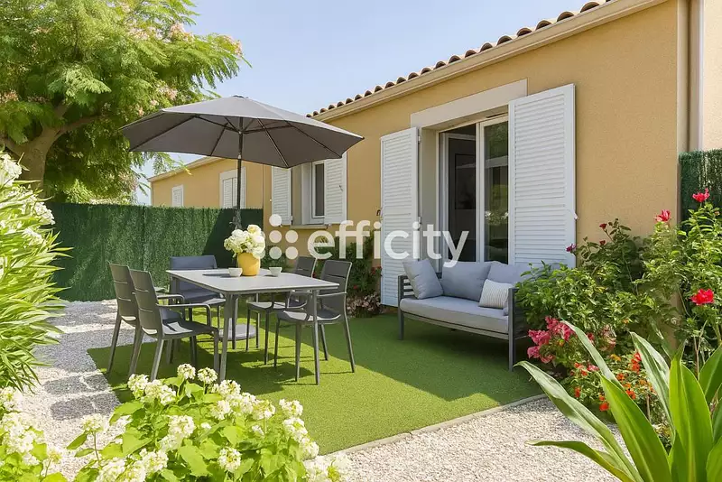 Visite possible à partir du 25/08 - Angélique VILLEDIEU et effiCity, l'agence qui estime votre bien en ligne, vous proposent cette charmante maison de ville située dans la résidence calme et verdoyante “Les Villages d'Or” à Castelnau-le-Lez.