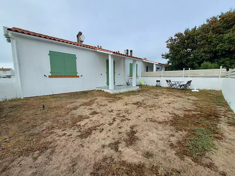Côte ouest - A proximité de la plage, sur un terrain de 155 m², MAISON d'une surface habitable de 41 m² comprenant un séjour avec coin-cuisine de 16,50 m², un dégagement, deux chambres de 8,60 m² et 10,30 m² avec placard, une salle d'eau, des WC séparés - Un garage attenant de 21 m², un jardin clos avec auvent - Chauffage par pompe à chaleur air/air. (5.20 % honoraires TTC à la charge de l'acquéreur.)