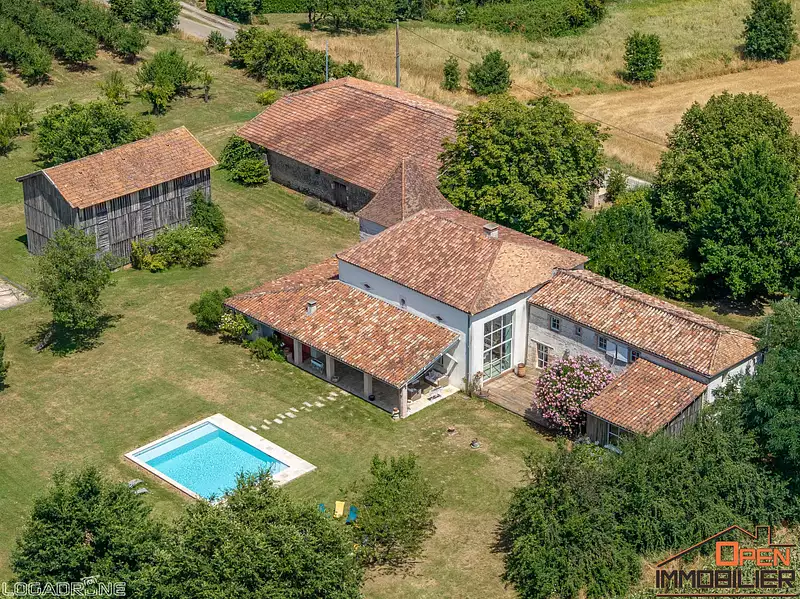 Entre Toulouse et Bordeaux, à quelques pas de Castelmoron-sur-Lot Laissez-vous séduire par l’élégance intemporelle de cette propriété d’exception, authentique maison d’architecte nichée dans un écrin de verdure, au cœur du Lot-et-Garonne.