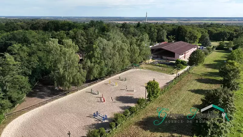 Idéalement située dans un charmant village en plein coeur de la forêt de Fontainebleau, à 15 mn du Grand Parquet et 1 heure de Paris, propriété équestre d'environ 420 m2 habitables édifiée sur un terrain entièrement clos de 1,9 hectare.
