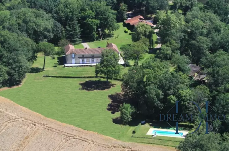 Située à moins de 20 km au nord-est de Marciac et de son célèbre festival de jazz, à 35 km de l'autoroute, à 75 km de l'aéroport de Pau et à 1h30 des pistes de ski, superbe propriété chartreuse restaurée d'environ 450 m² habitables exposée plein sud avec vue imprenable sur les Pyrénées, maison de gardien type F3 piscine et dépendance, le tout implanté sur un terrain de 13 hectares ventilé en un joli parc arboré de près de 2 hectares avec arbres centenaires, au milieu de 10 hectares de bois et de terres pour toujours plus de tranquillité.