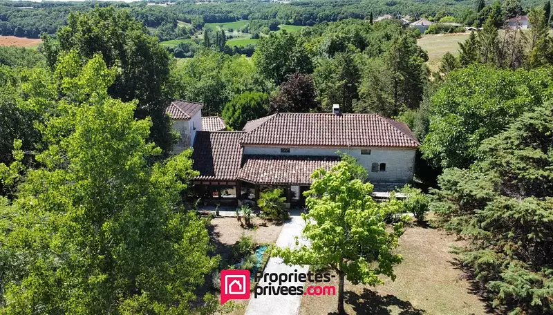 Sur la base d'une quercynoise de 1830, la demeure a profité d'une rénovation et d'un agrandissement soucieux de préserver les éléments de caractère, et offre aujourd'hui plus de 325 m² d'espaces à la fois atypiques et authentiques, modulables, et susceptibles de s'adapter à de multiples projets.