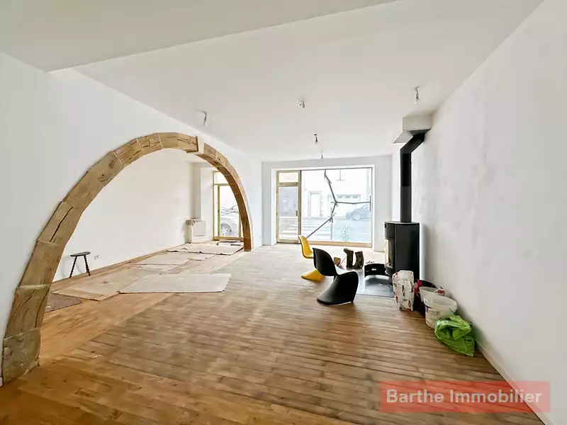 Au Rdc, un grand local commercial avec bureaux, wc et Sde.